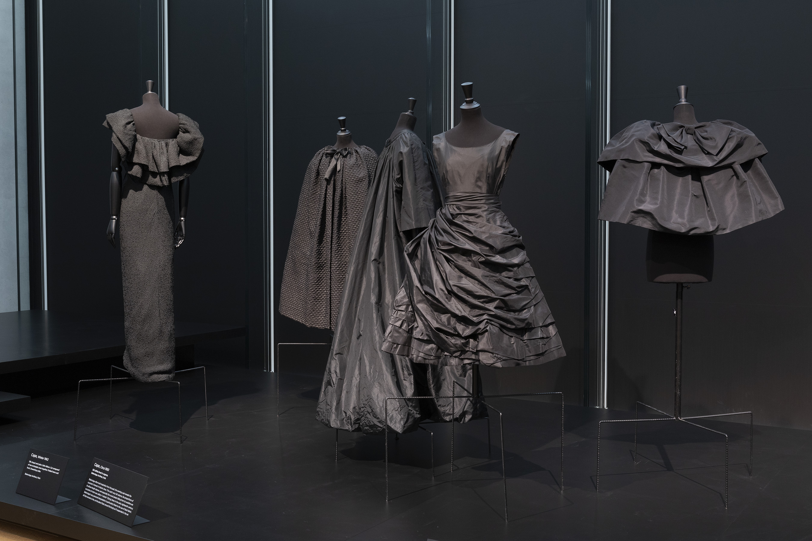 The designer’s talent and impact on the fashion industry is alive and well, and demonstrated in his designs. He experimented with tulle, lace and detail such as hand-sewn feathers and capes, in addition to creating an array of silhouettes, from cinched to drop-down waist dresses and flamenco-style dresses. Balenciaga would also work with jewelry designers who made accessories specifically for his garments. Incredible attention to detail and stunning silhouettes aside, his collection also shares another common element: it’s all in black (except for the occasional pop of pink). To Balenciaga, creating garments in black paid homage to his Spanish roots and allowed him to truly experiment with his creations.