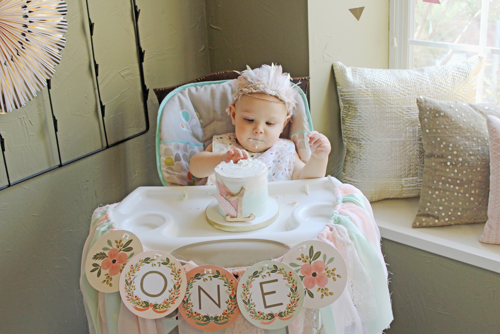 Courtney FitzPatrick started planning her daughter’s first birthday party before baby Brynn was born. The Allen mom daydreamed about recycling some of her whimsical wedding decor should she and her husband, Kevin, ever have a daughter. So on Brynn’s first birthday, Courtney centered the celebration around the same rosy pinks, mint greens, soft peaches and touches of gold she used on her day of matrimony to create a bohemian dream.