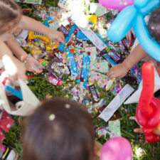 Feeling nostalgic for the days when kids’ parties were more about fun with family and friends than pomp and circumstance, Sophia’s mom Hilda decided to make use of her outdoor space by throwing a good, old-fashioned backyard bash complete with a piñata and pinwheels, sidewalk chalk and bottles upon bottles of bubbles.