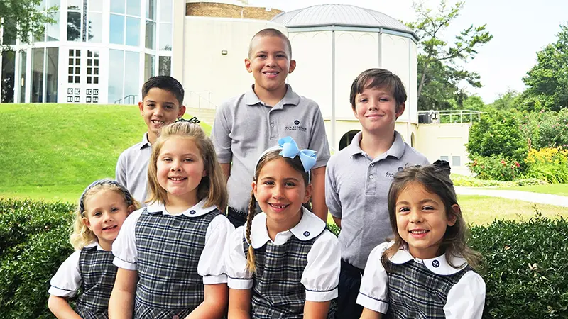 Elementary grades (K–5th) emphasize mastery in core subjects with weekly art, music, Spanish, technology, library, and PE. Middle school (6th–8th) adds departmentalized instruction, expanded enrichment, and competitive athletics, preparing students for high school and beyond.