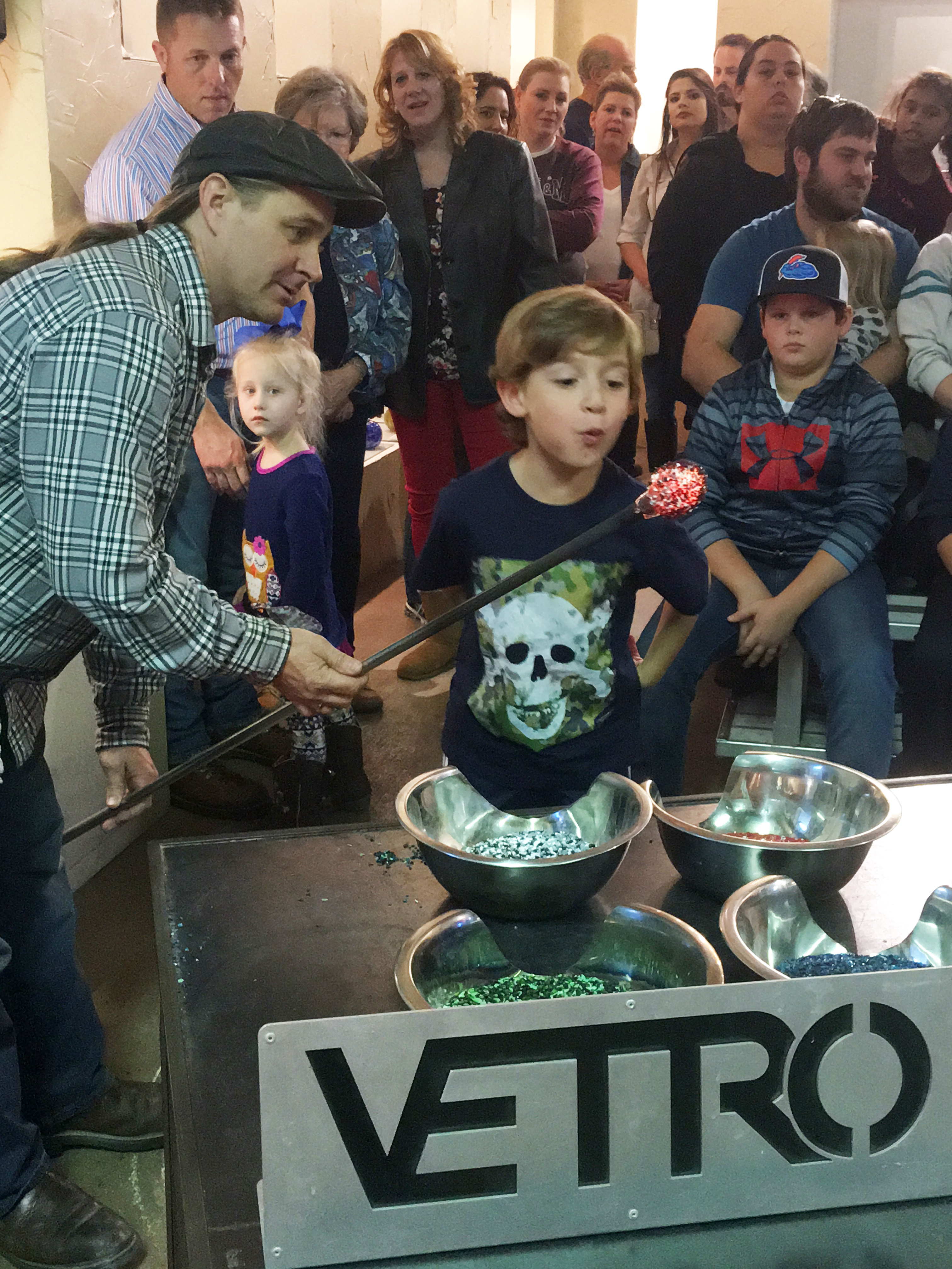 Choose from a selection of 5 color schemes and help professional glassblowers at Vetro in Grapevine glass flared bowl.
