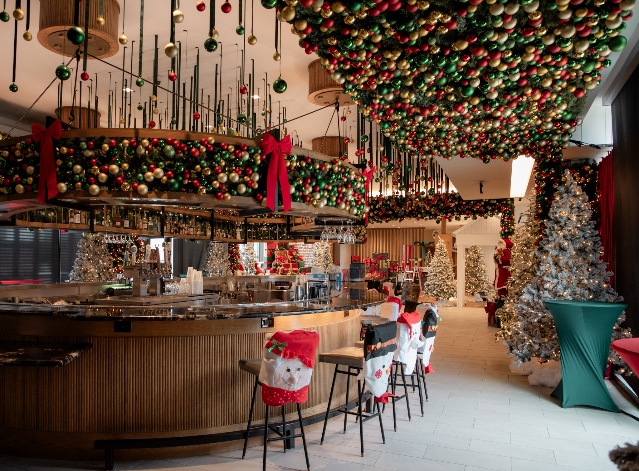 -Sip & Wrap, Ugly Sweater Parties, Gingerbread House and cookie decorating workshops & cocktails, Carol-oke nights, Santa appearances, and more.