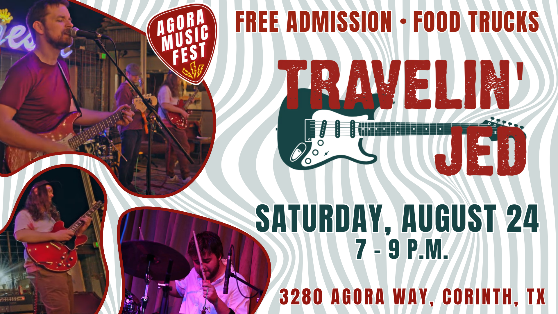 Grab your friends and head on over to Agora on Saturday, August 24 for the last concert in the Agora Music Fest concert series. Bring your lawn chairs and blankets to the Commons at Agora because we have your Saturday night plans covered! Food, beverages, and dessert items will be available for purchase. Get ready for music from the unique and entertaining, Travelin' Jed.