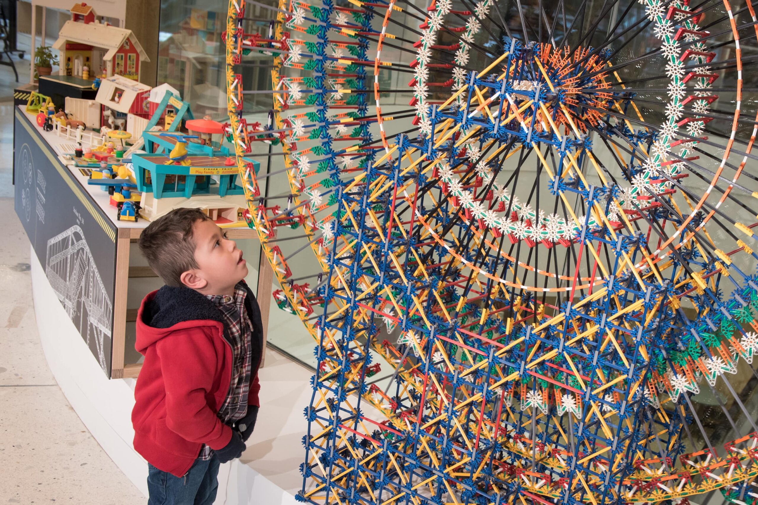 Additionally, the show looks at the various toy buildings in existence, with a special emphasis on doll houses, including one of the first Barbie Dream Houses and a house built by an architect for his daughter in the 1970s. Also included are groups of buildings from the Fisher-Price collection and the metal toys of the Marx Company. A highlight of the show is a 6-foot tall K’Nex Ferris Wheel made up of 8,550 individual pieces.