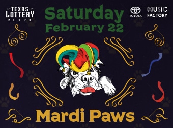 Let the good times roll on Texas Lottery Plaza, which is throwing a paw-raising Mardi Gras Party on Saturday, February 22. Starting at noon, the festivities kick off with music, food and drink plus the DFW Humane Society and Irving Animal Shelter will be hosting an adopt-a-thon.