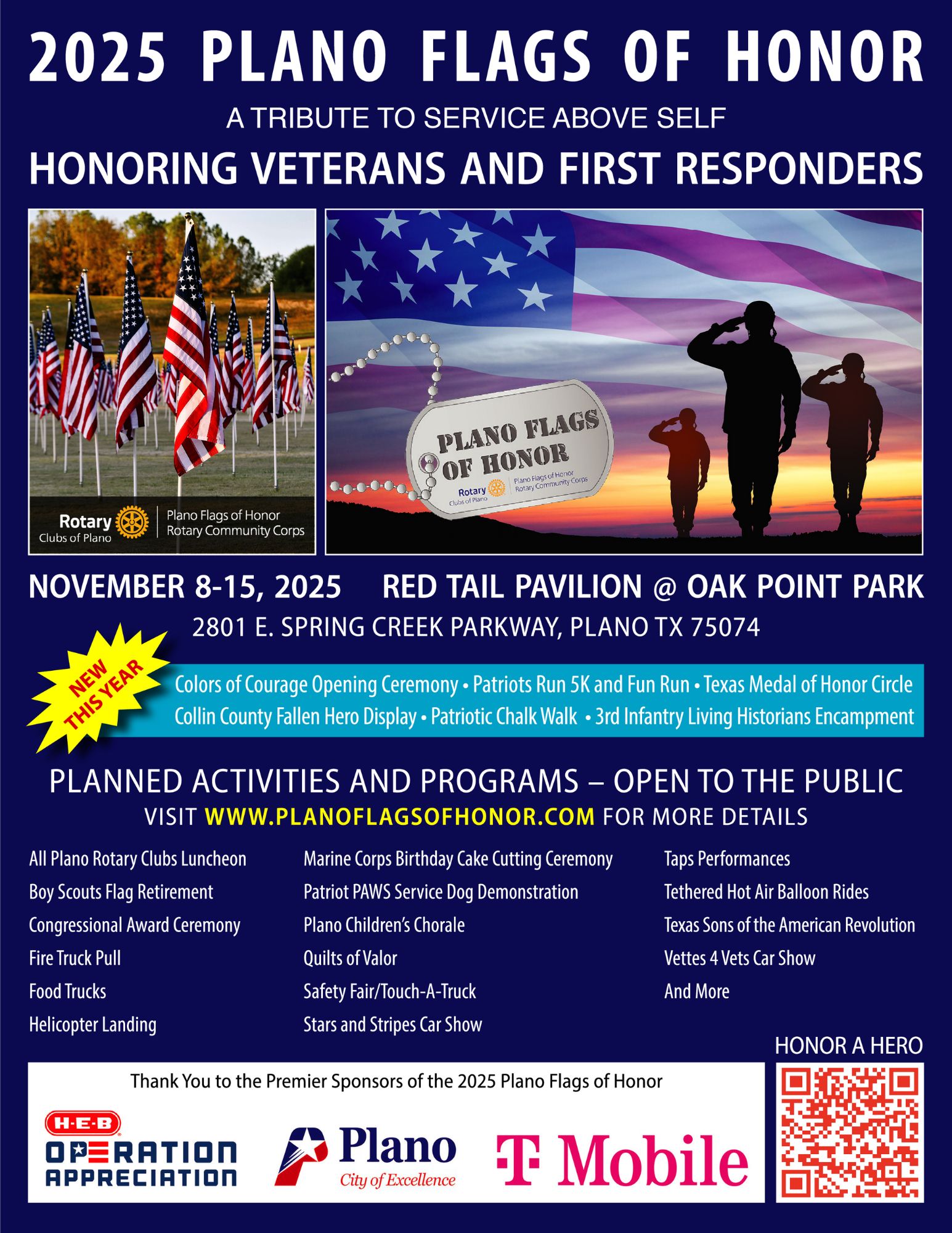 Presented by the Plano Flags of Honor Rotary Community Corps, the event offers a powerful opportunity to reflect, learn, and show gratitude to those who serve.