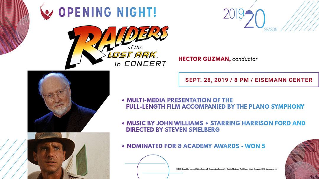 Enjoy a full-length film presentation of Raiders of the Lost Ark starring Harrison Ford, directed by Steven Spielberg, and accompanied by the Plano Symphony Orchestra. The famous music score is by John Williams.