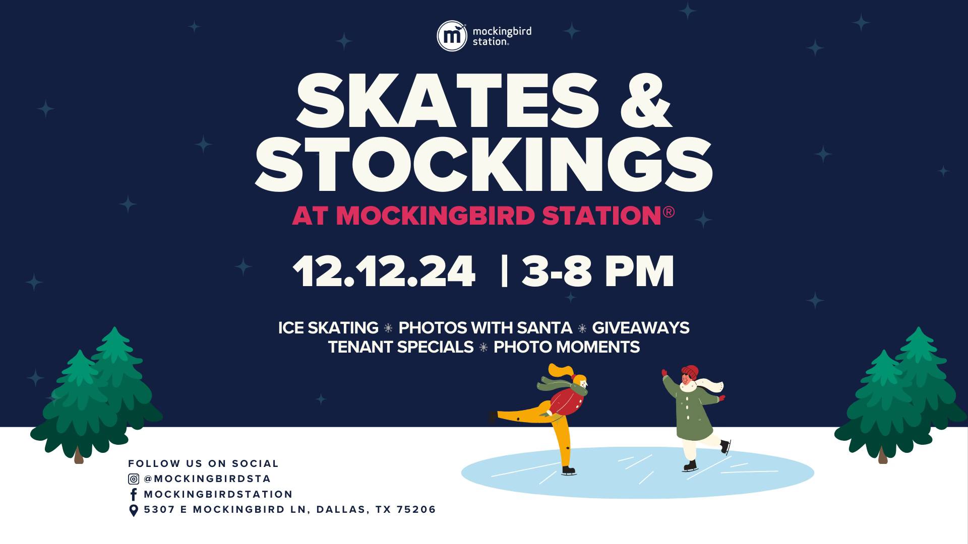 Get ready for a holly, jolly good time! Mark your calendars for Skates & Stockings at Mockingbird Station, happening on Thursday, December 12 from 3–8pm.