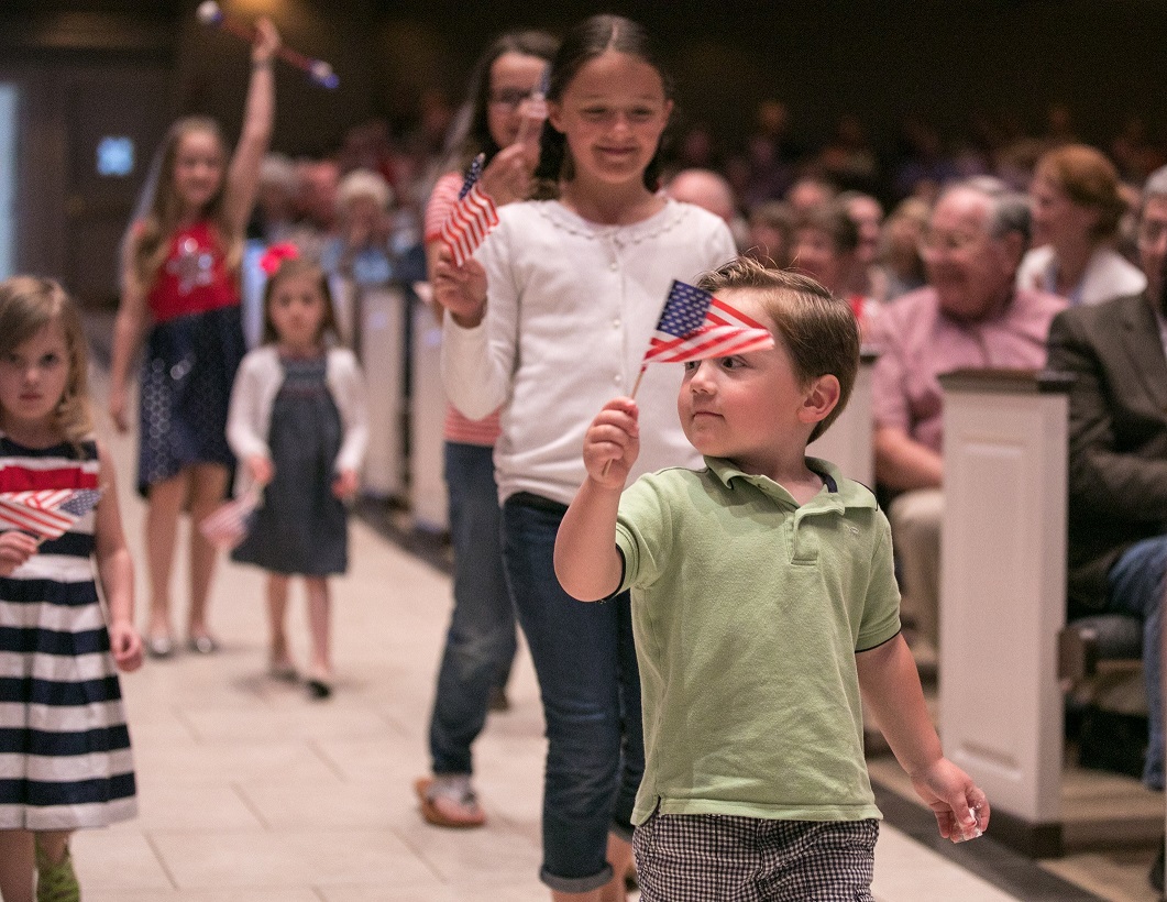 Small American flags will be provided to children who wish to participate in a patriotic parade throughout the sanctuary during the program. The event will also include a special salute to the armed forces and free snow cones for everyone.