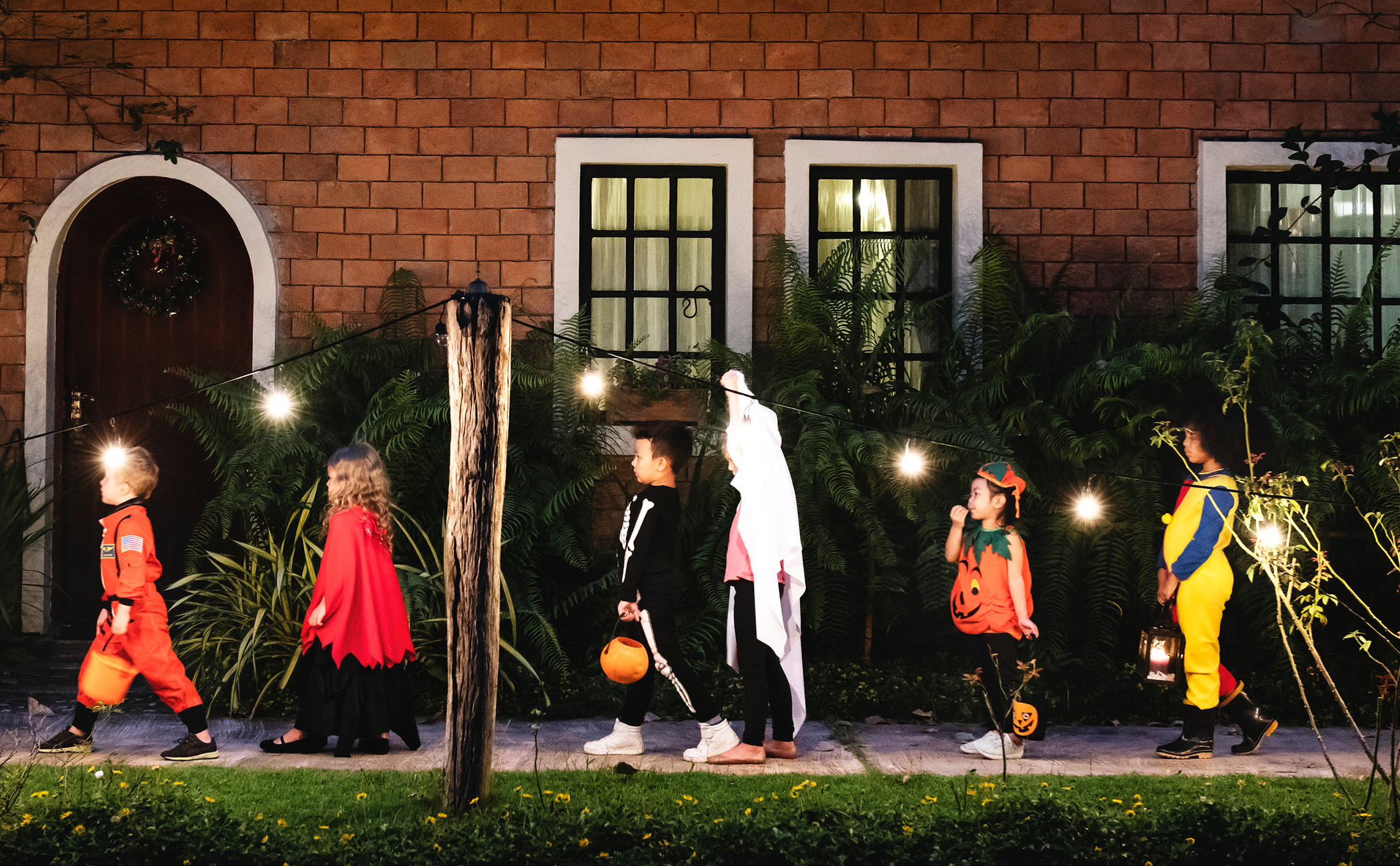 In addition to crafting a clear trick-or-treat route, make sure your kids don’t get lost among the countless witches, ghosts, mummies and more who are roaming your neighborhood. If possible, dress your kids in costumes that are colorful, bright and unique. “Wearing reflective clothing or carrying flashlights or light up toys can be helpful—consider a candy bucket that lights up,” Simon suggests. Another tip is to coordinate with neighbors to hand out glow sticks during the night.