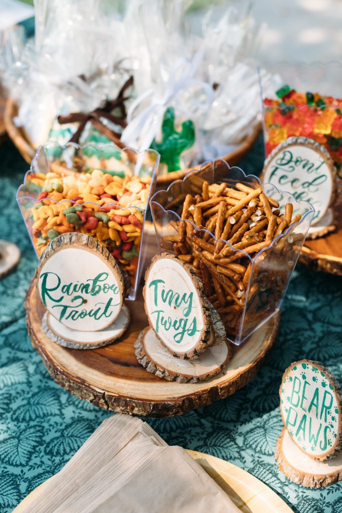 Guests posed next to the wooden park sign constructed by Ryan’s grandfather and Pinterest-quality balloon garlands fashioned by Perez and her sister. The Dallas mom thoughtfully sourced other woodsy decorations from local retailers like Flea Style, Peek Kids and Viv Jordan Studio.