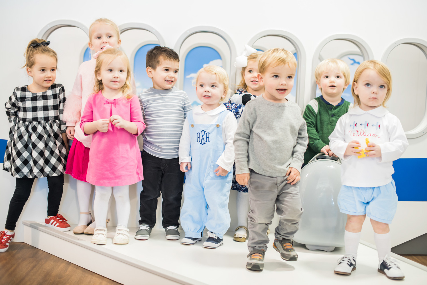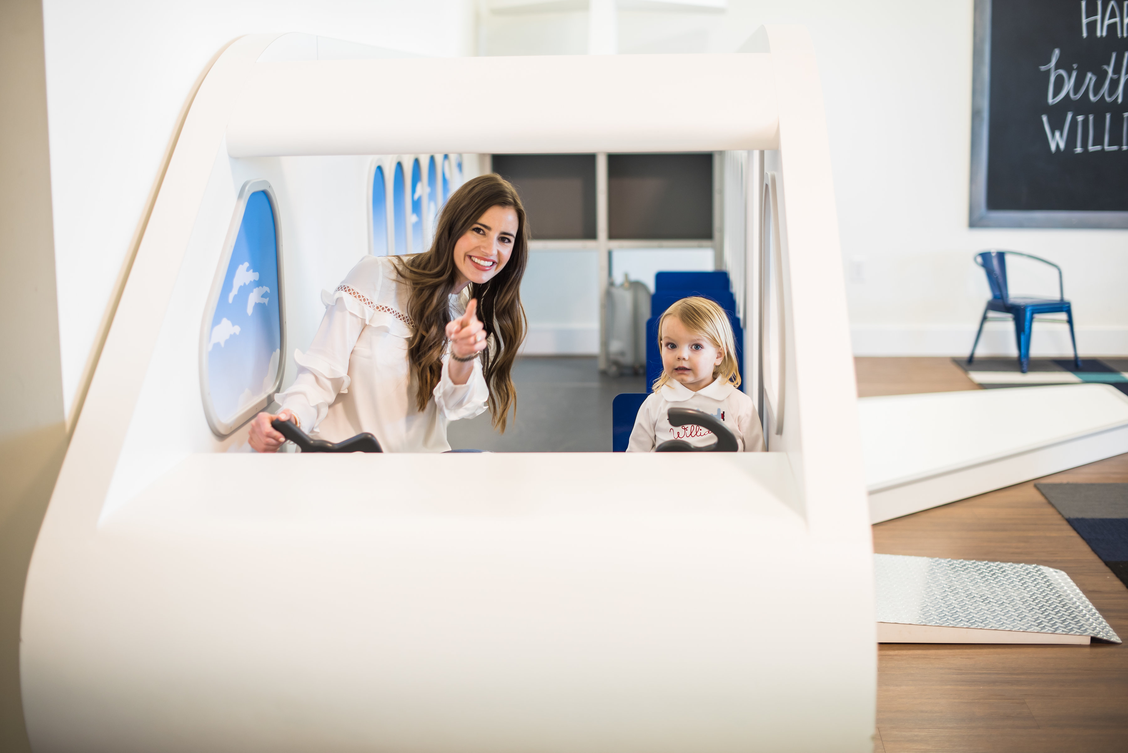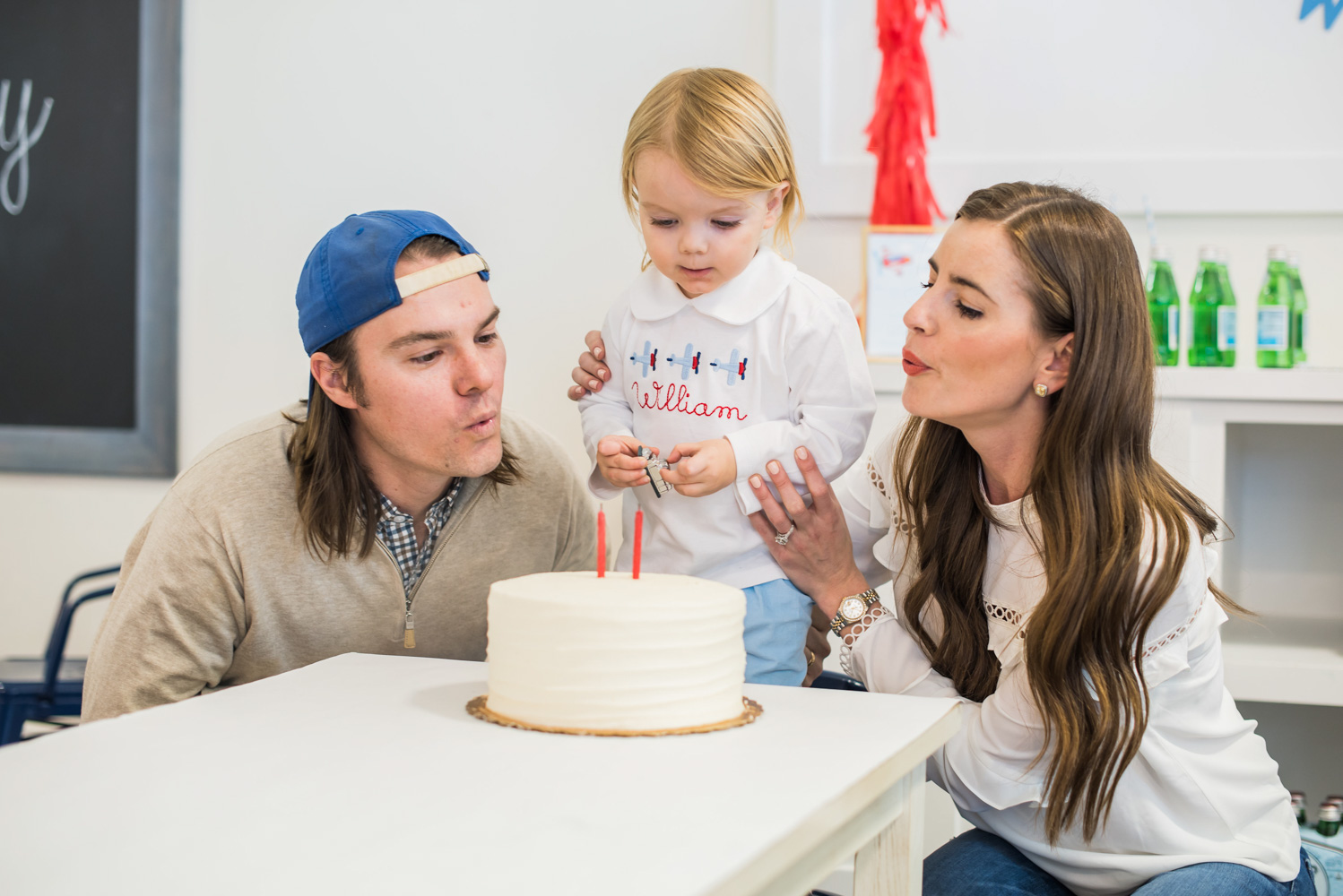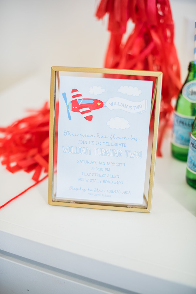 For her son William’s second birthday, Stia Allen Coffman had her head in the clouds. The mom of two (you might know her from her popular fashion blog, Bishop & Holland) translated William’s love of airplanes into a sky-high celebration. The first class fete was held at Play Street Museum’s “On the Go”-themed location in Allen, which features a kid-size airplane, toy train stations and even a pretend travel agency.