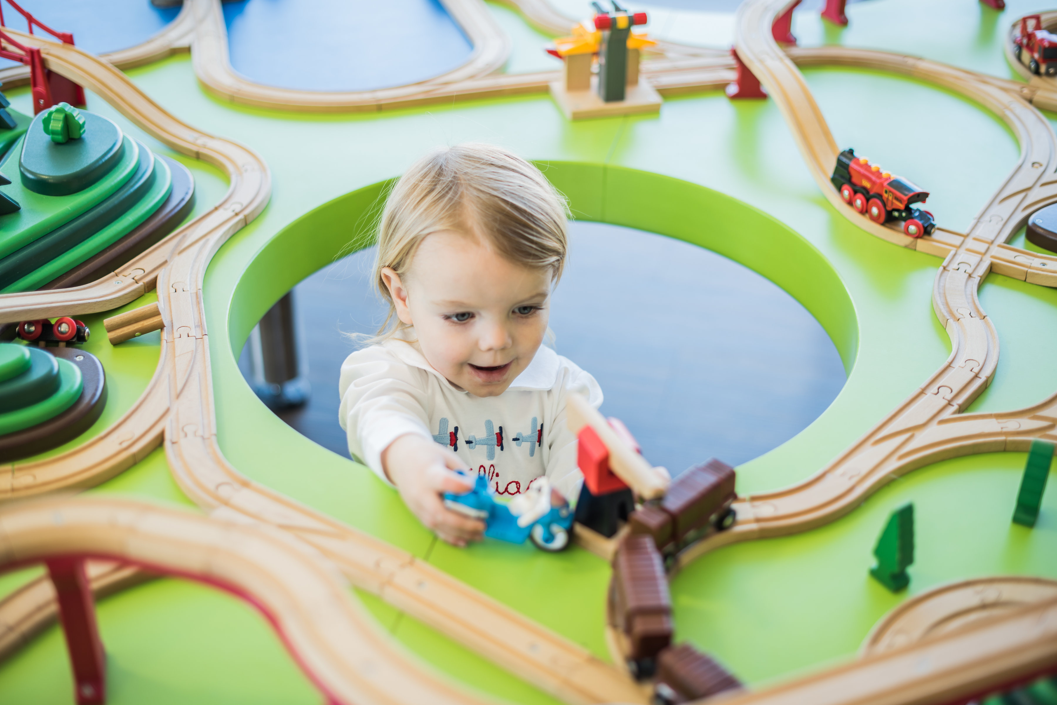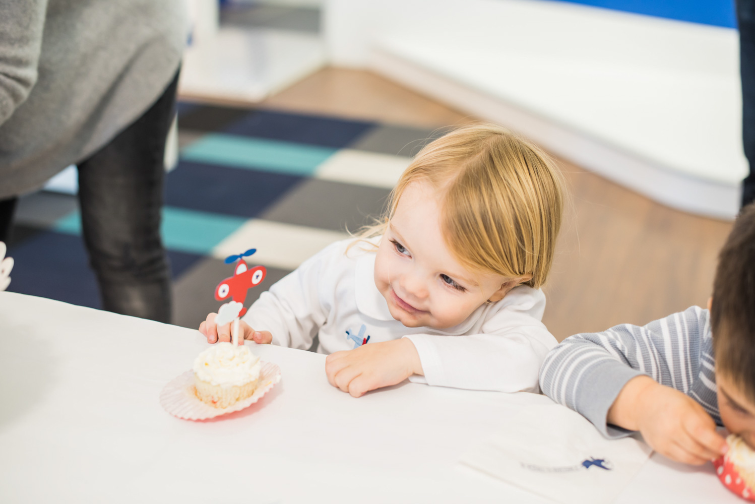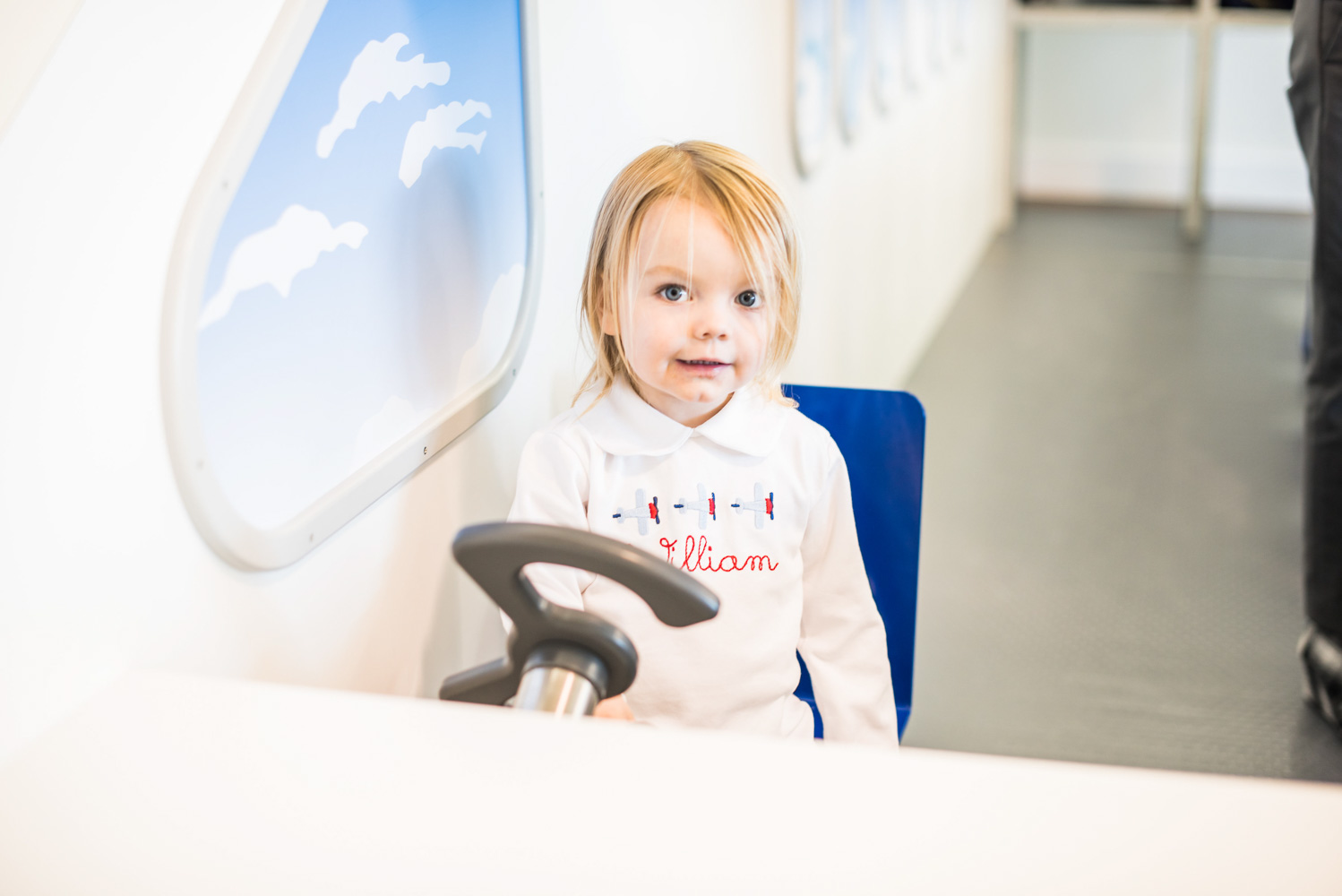 For her son William’s second birthday, Stia Allen Coffman had her head in the clouds. The mom of two (you might know her from her popular fashion blog, Bishop & Holland) translated William’s love of airplanes into a sky-high celebration. The first class fete was held at Play Street Museum’s “On the Go”-themed location in Allen, which features a kid-size airplane, toy train stations and even a pretend travel agency.