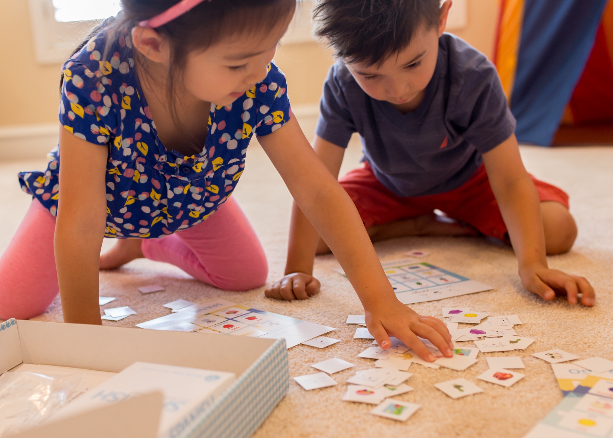 I learned early on as a parent that if I don’t capture the interest of my toddler in the first 5 minutes of starting that activity, I will have lost her attention to a newer, shinier toy. And as a busy mom (because all moms are busy!), I didn’t want to deal with the inconvenience of pulling language books, videos and flashcards from five different places every time we wanted to practice. If it required too much effort for me to teach my child a new skill, I’m likely not going to follow through with it. I only have so much time during the day—and getting dinner on the table and ensuring a proper bedtime take precedence.