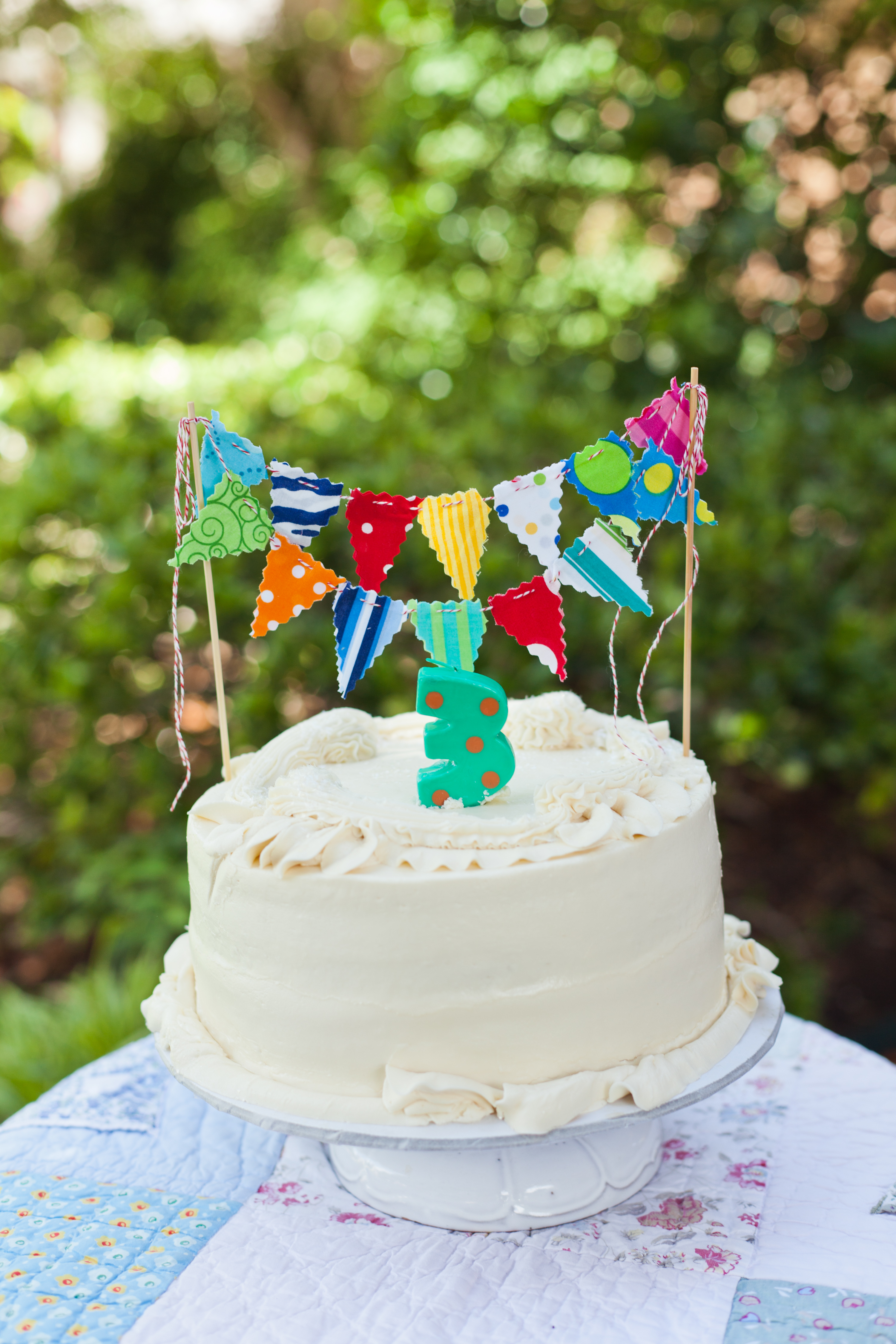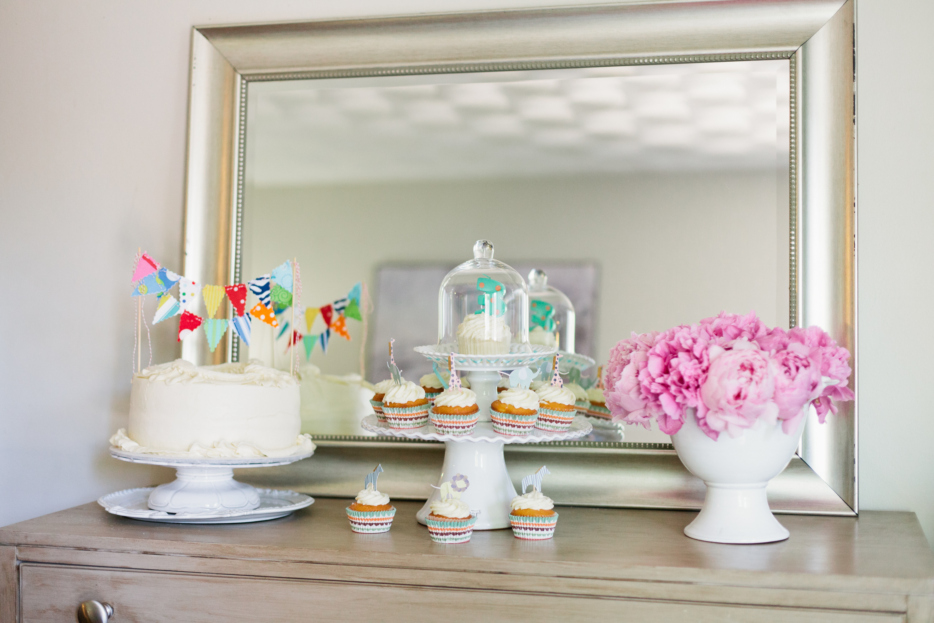 The cake, from Hilda’s all-time favorite bakery, was classic wedding-cake white filled with lemon custard and iced in buttercream frosting – perfect for the warm weather. But it was the cupcakes the kids were after. Hilda paid a visit to Whole Foods where she picked up traditional white cupcakes, which she “jazzed up” with fun liners, toppers and the always-quintessential sprinkles.
