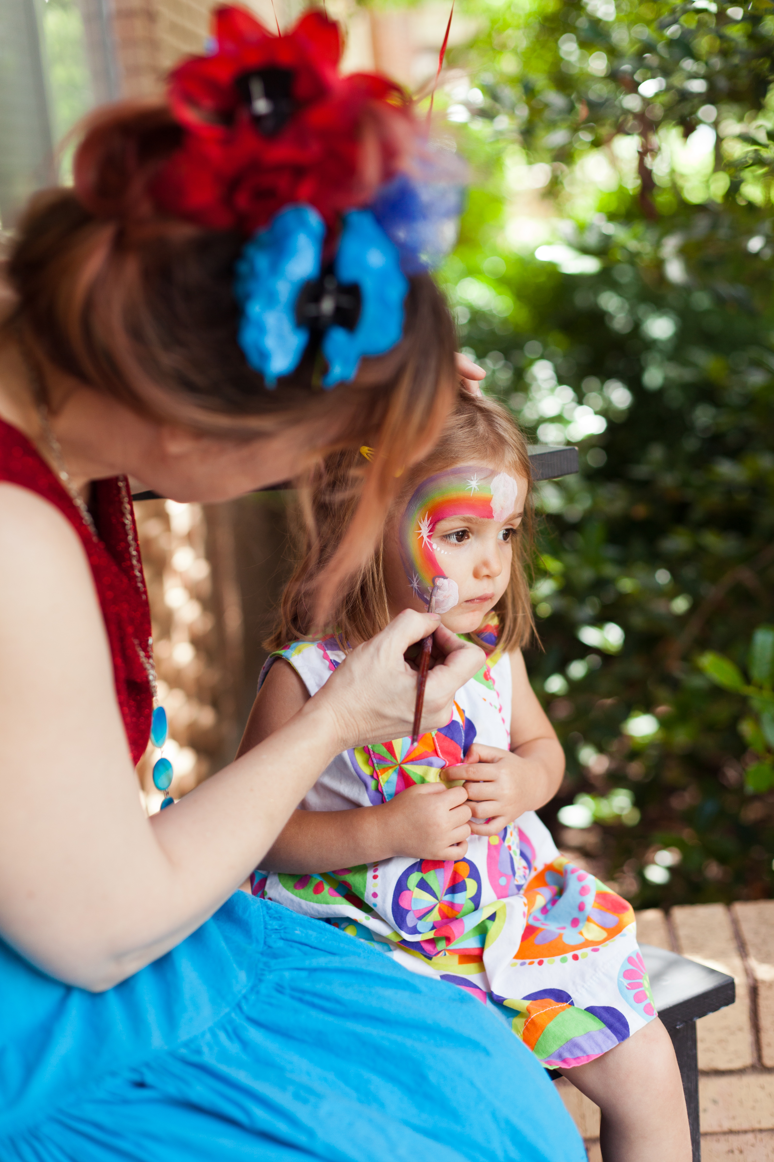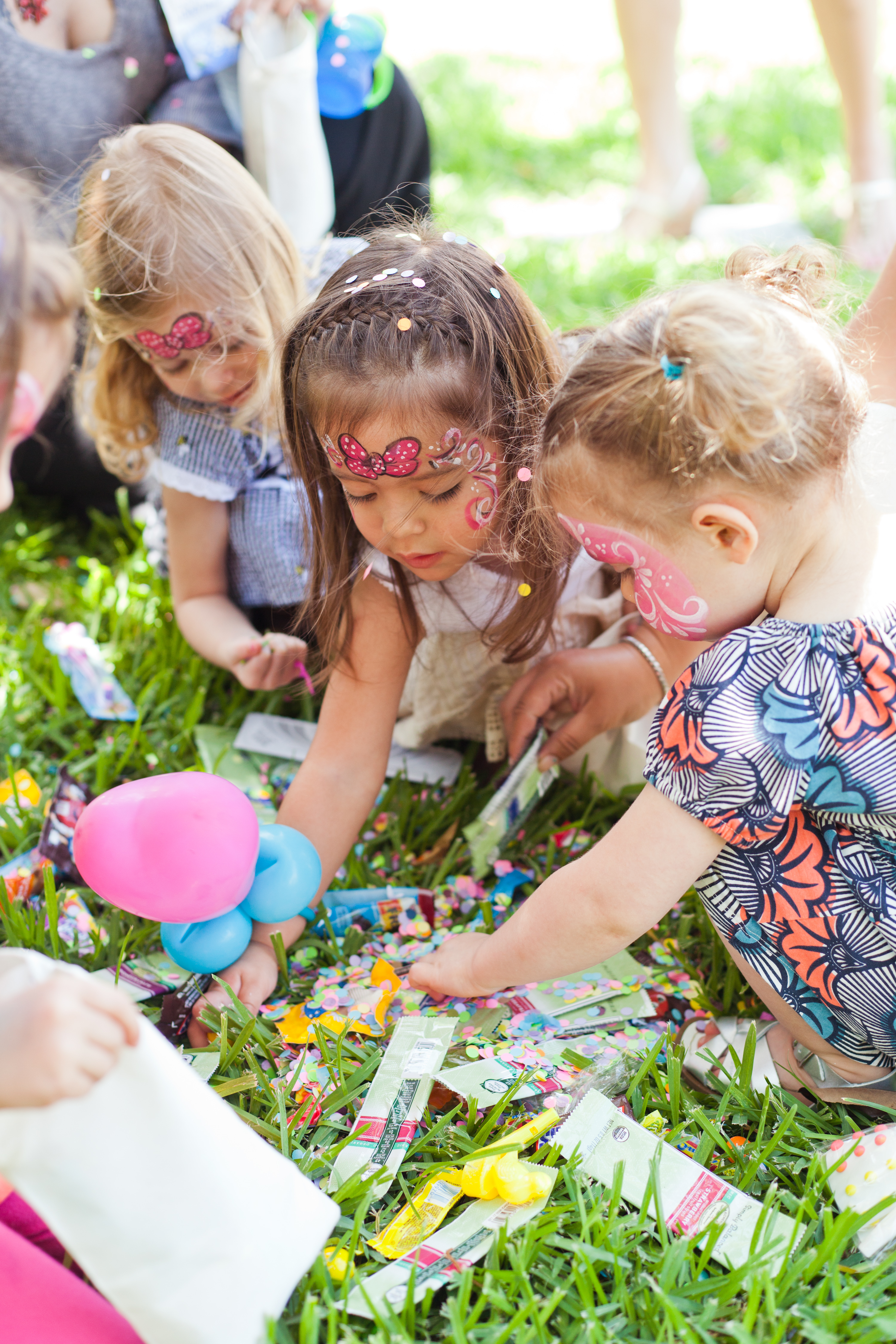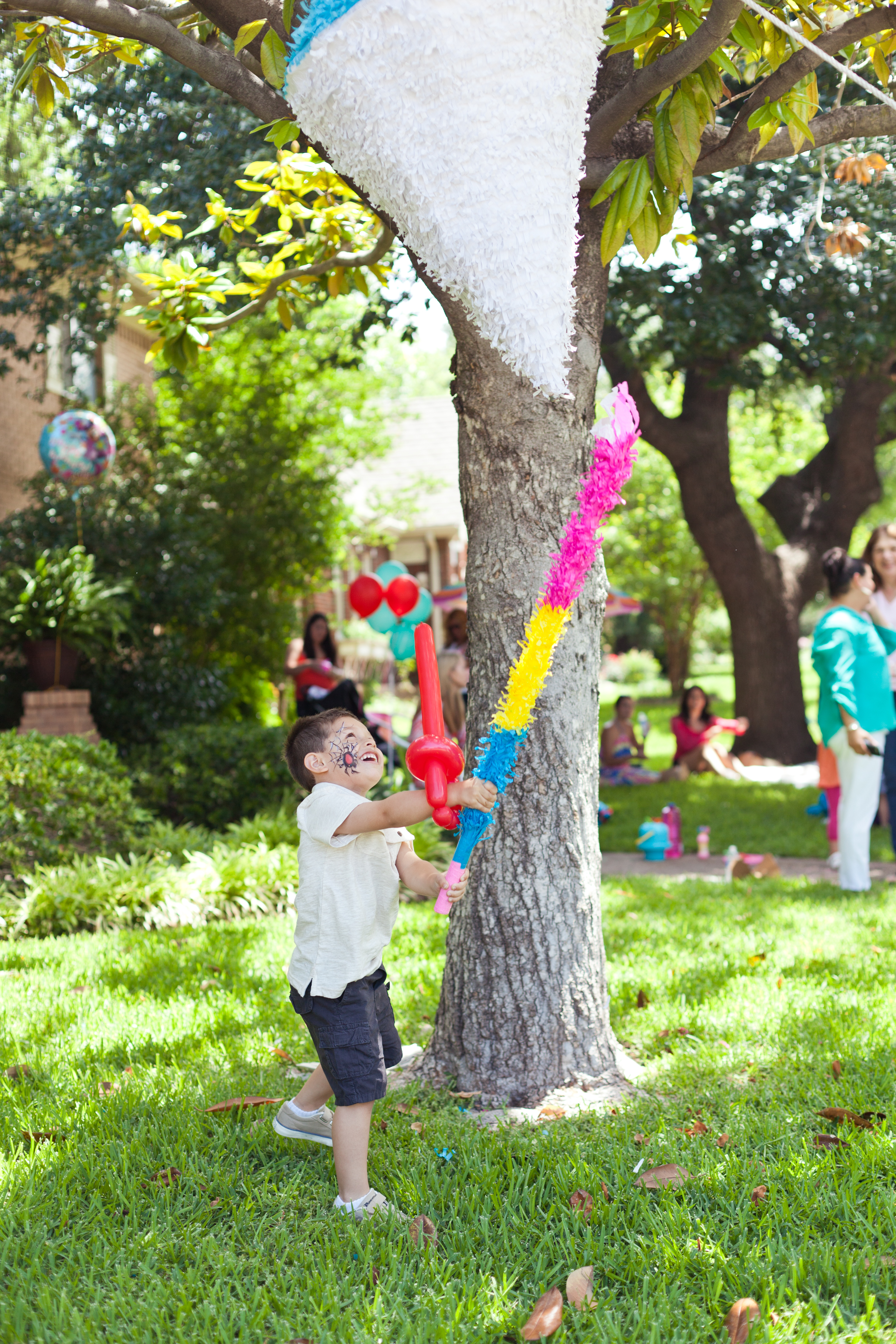 Hilda’s vision came to life when, on the day of the party, guests lounged on quilts (miniature lawn chairs for the pint-sized attendees) and kids decorated the sidewalk with chalk art, blew bubbles and swung at a piñata, filled with toothbrushes, stickers and, of course, pieces of candy. When Sophia and friends weren’t busy doodling and having at the custom-made snow cone piñata, they had their faces painted, ordered up balloon animals and enjoyed real snow cones, courtesy of the Enticed Shaved Ice truck. “Everyone there, from the littlest baby to the grandma, loved the snow cones,” Hilda says.