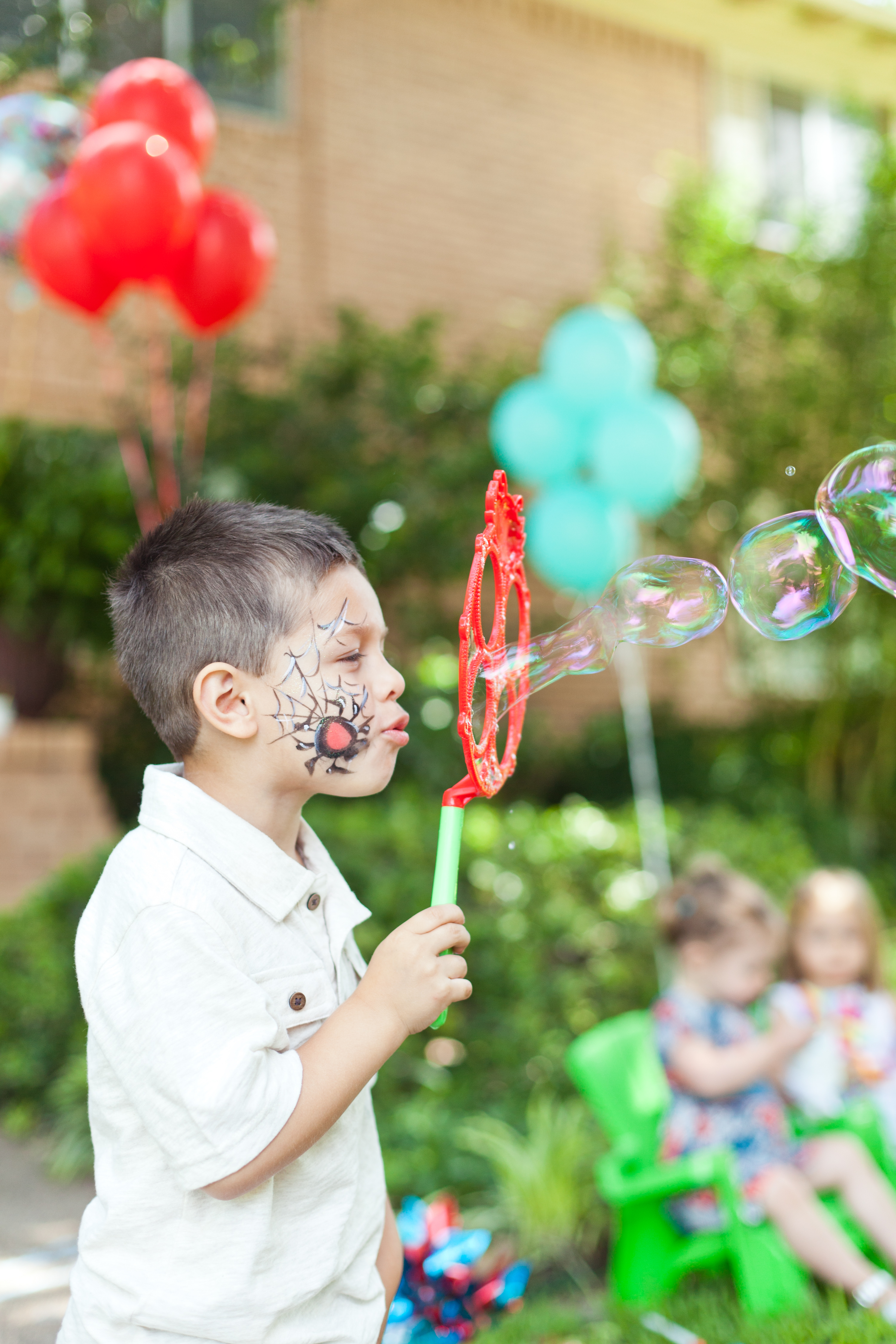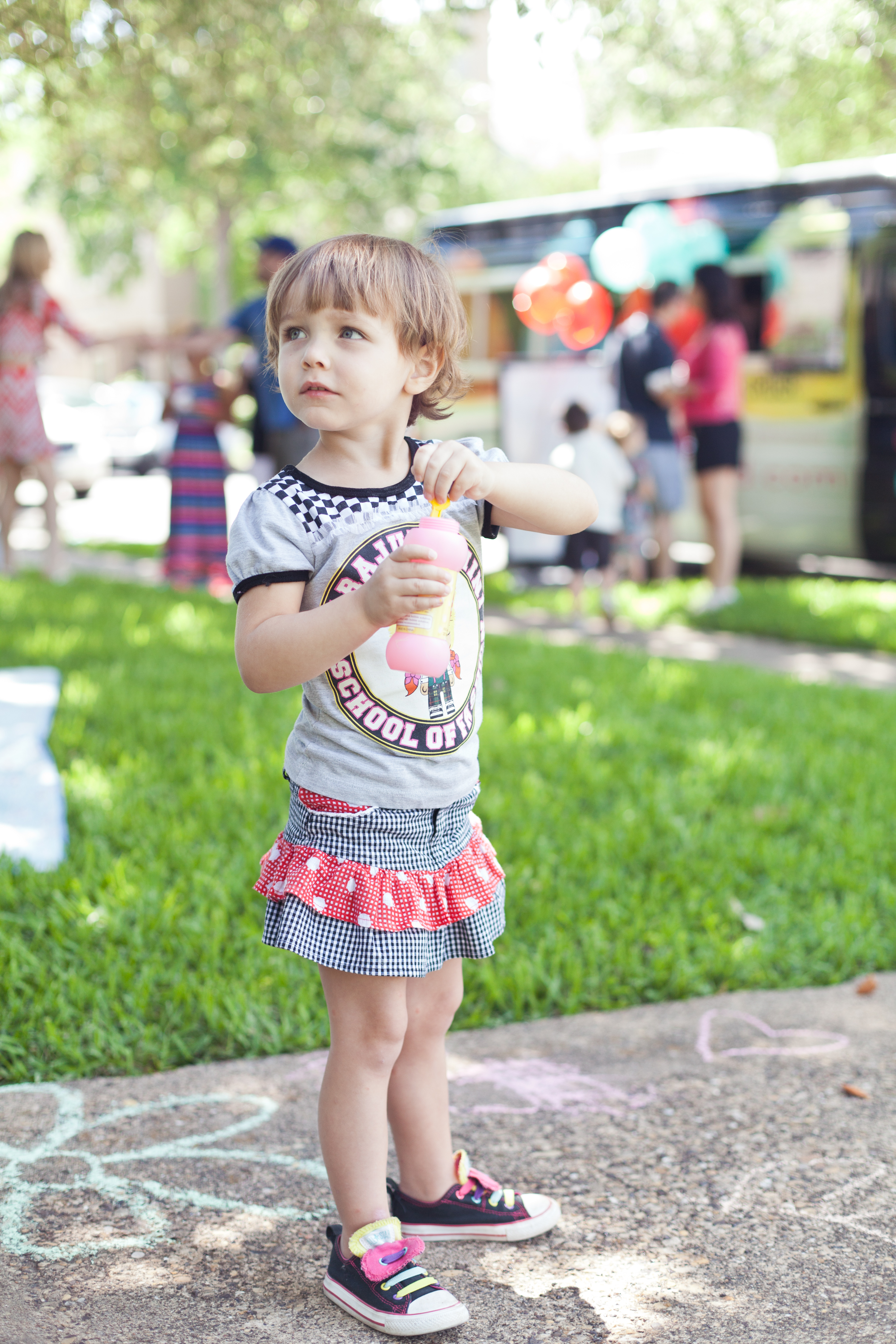 Feeling nostalgic for the days when kids’ parties were more about fun with family and friends than pomp and circumstance, Hilda decided to make use of her outdoor space by throwing a good, old-fashioned backyard bash complete with a piñata and pinwheels, sidewalk chalk and bottles upon bottles of bubbles.