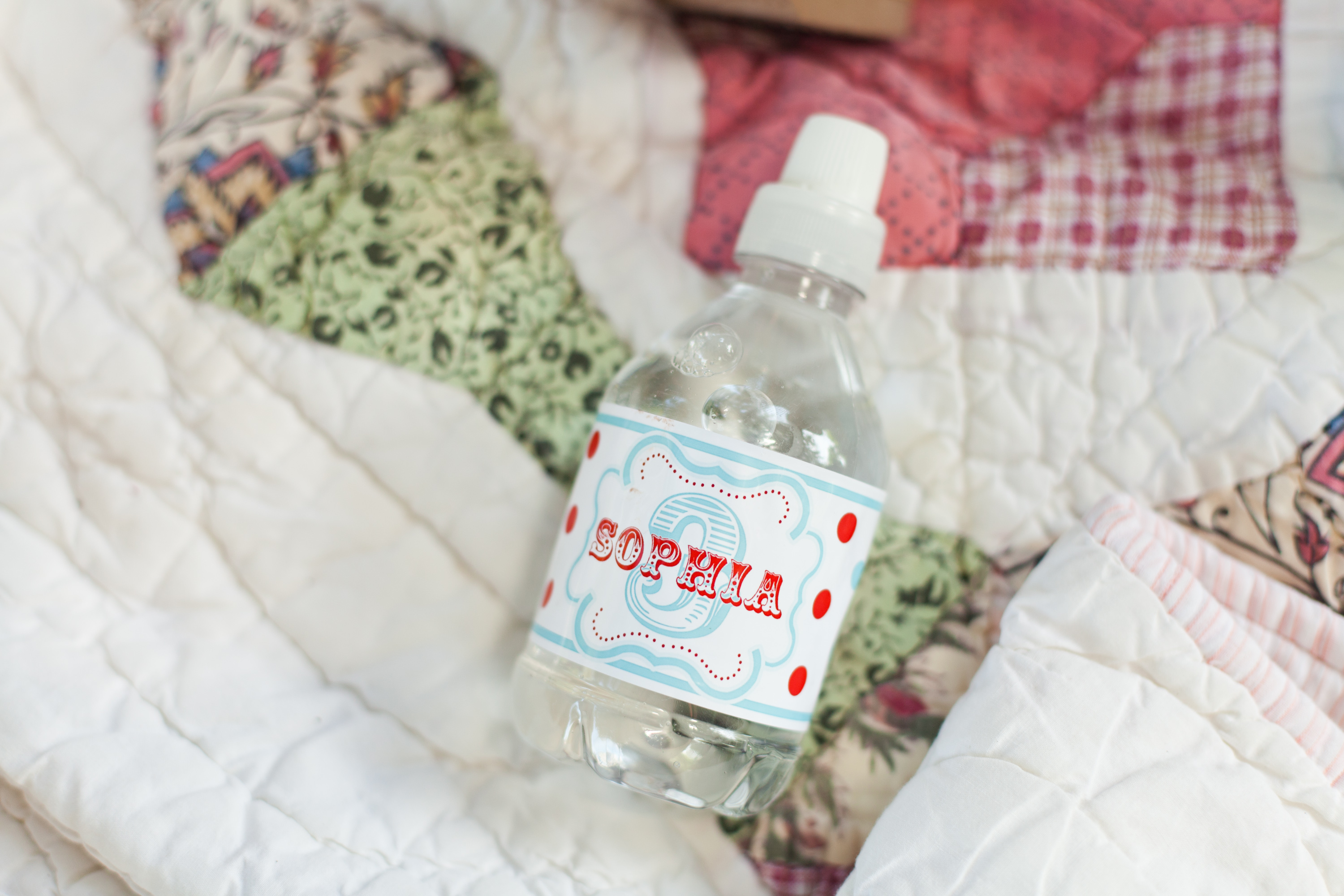 In concept, the party was simple and sweet, but Hilda went all out when it came to the details. Pops of red, turquoise and white accented the party, from custom water bottle labels to balloons and colorful cupcake toppers. Before heading home, each guest grabbed a party favor, a bucket filled with warm-weather essentials: sidewalk chalk, bubbles and sunglasses.