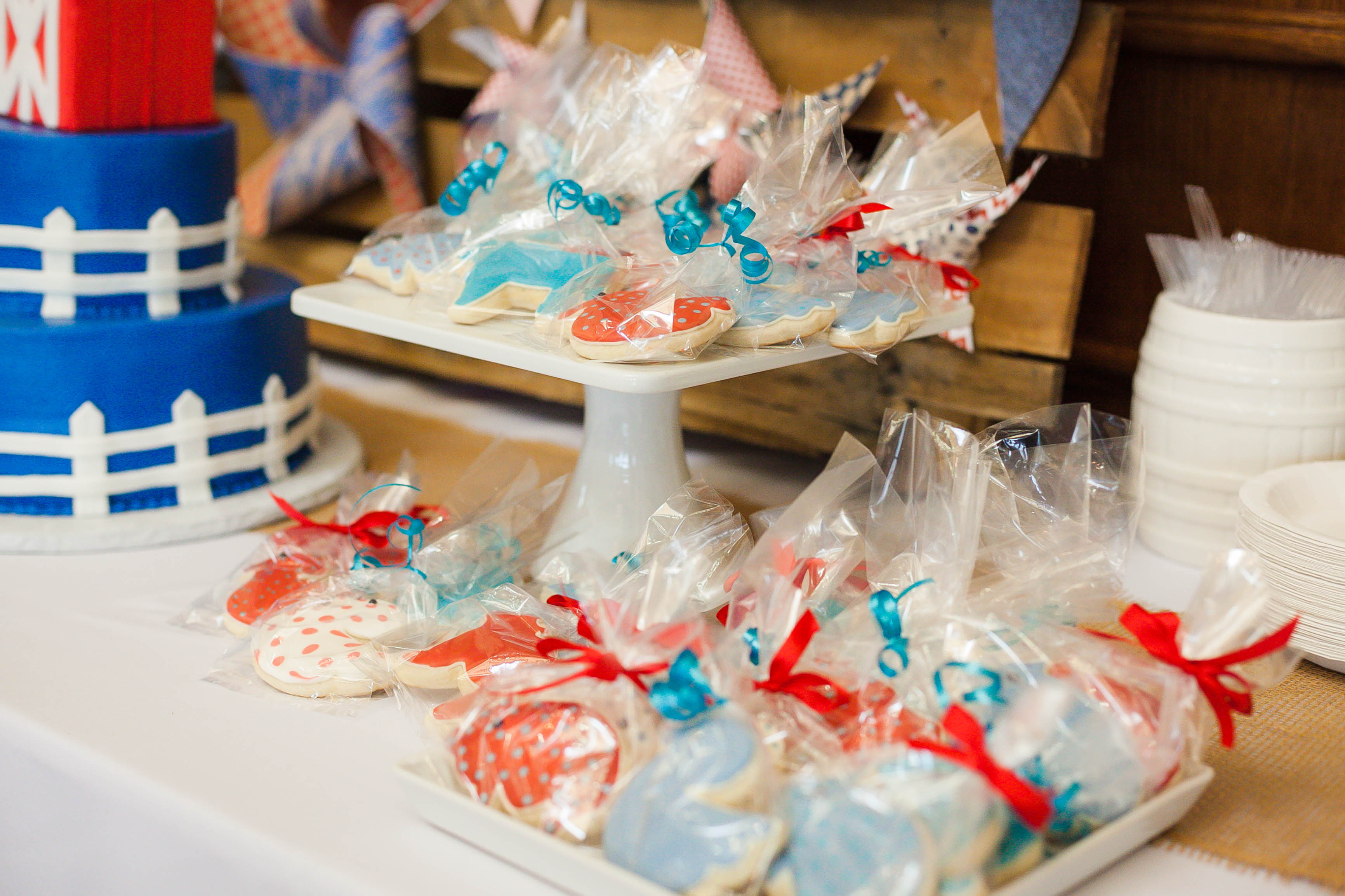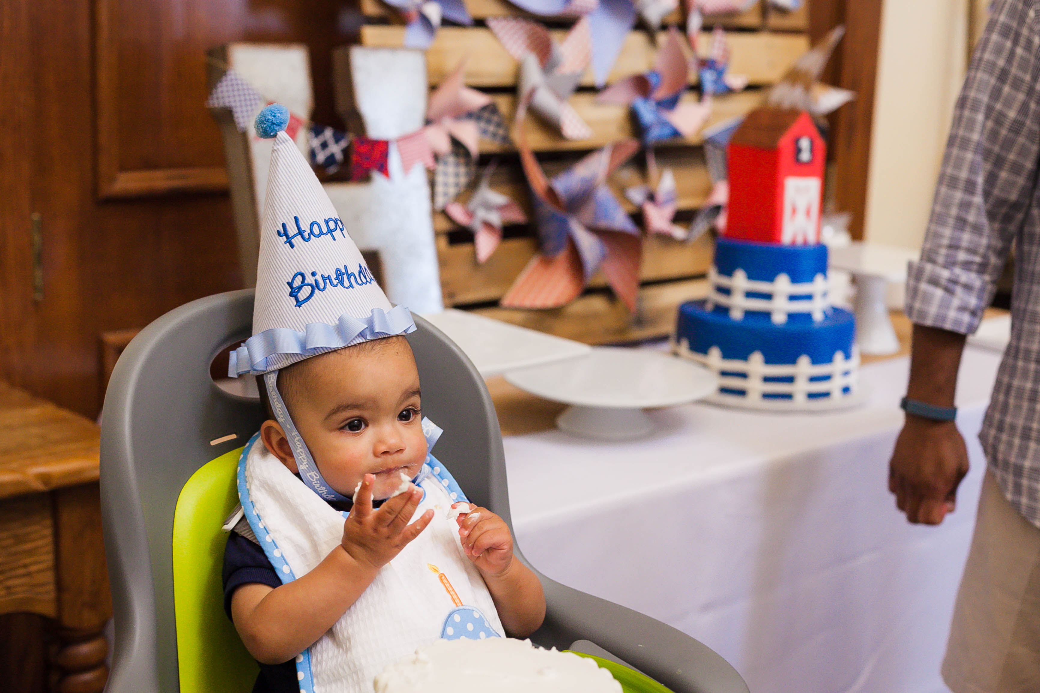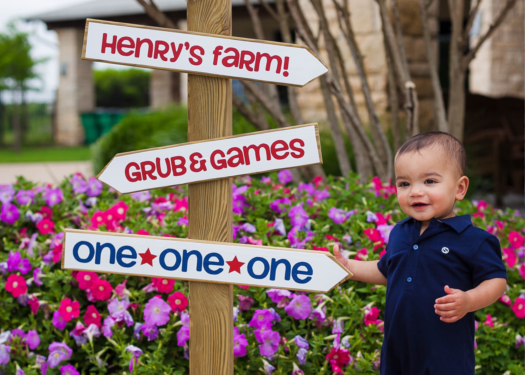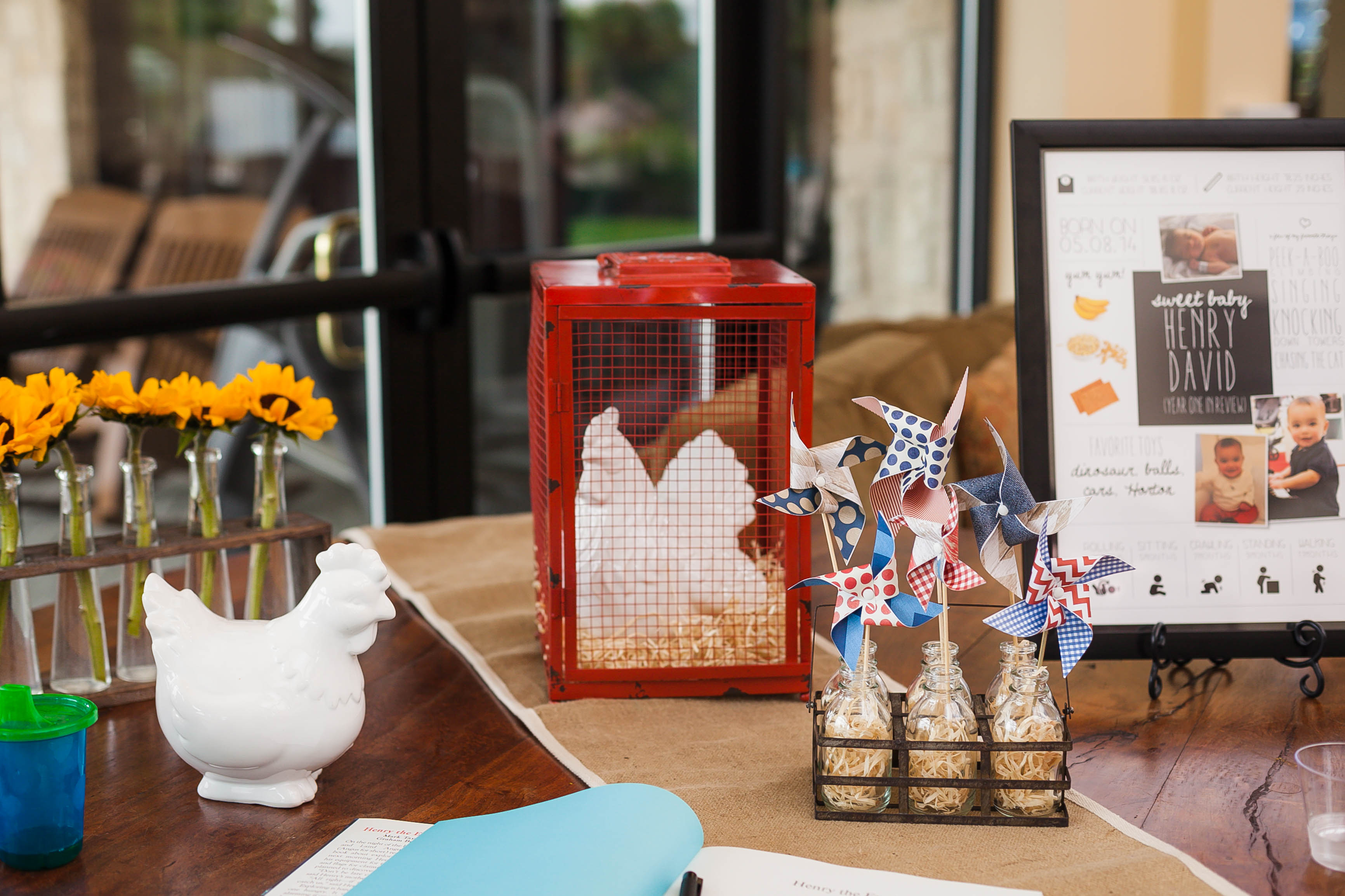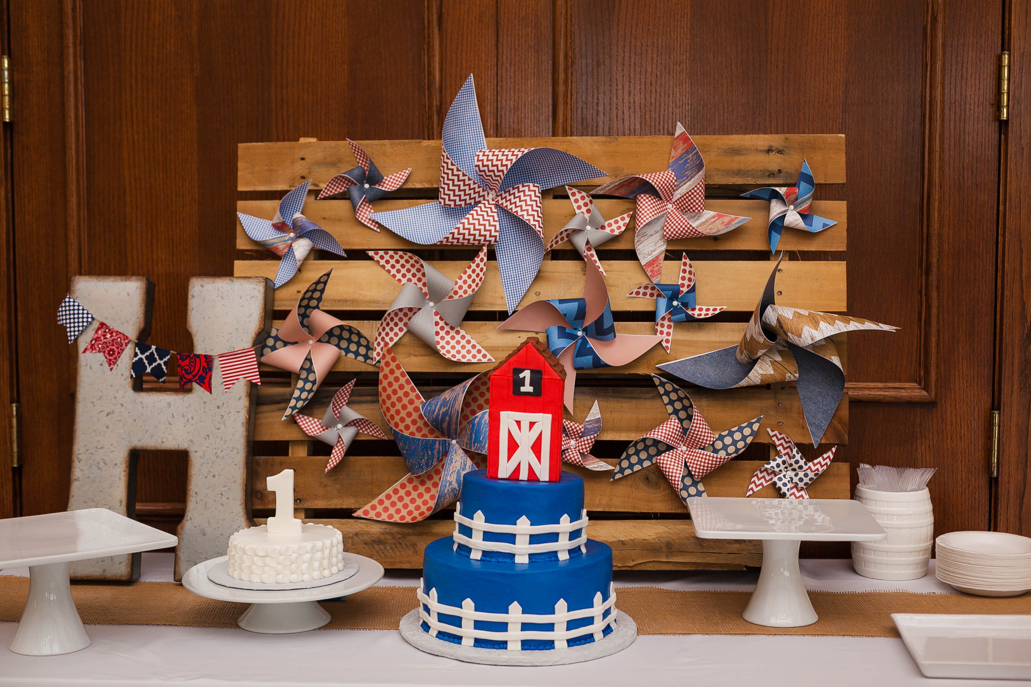 Party inspiration can strike anywhere — Rachel Sam took the farm theme for her son Henry’s first birthday from his favorite bouncy seat at day care. She ordered red-white-and-blue invitations from Chips & Salsa Designs, hired a baby-friendly petting zoo and partnered with Parties on the Porch to bring a modern farm vibe to her Frisco neighborhood community center.