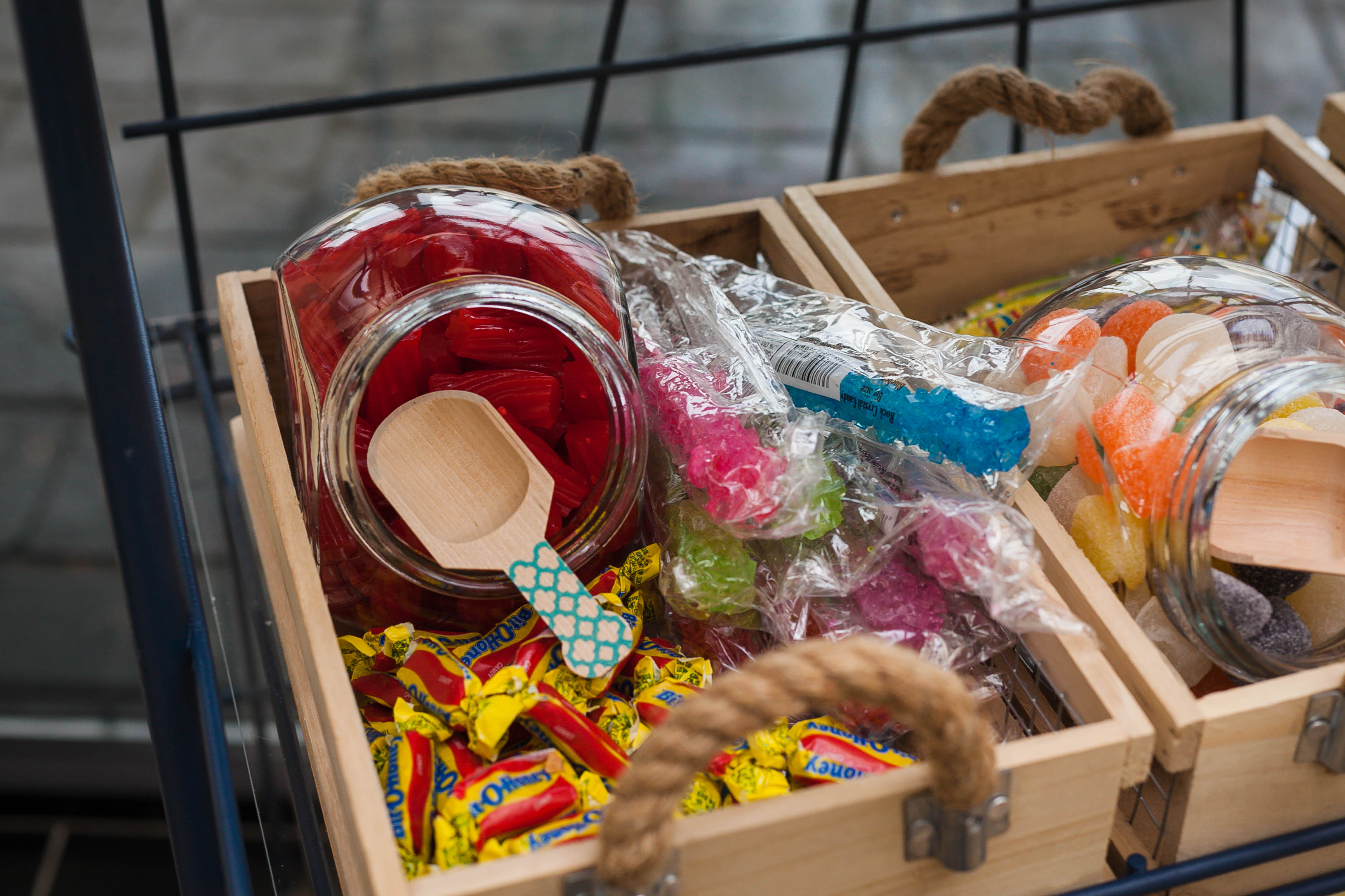 Before indulging in vanilla cake from TraceyCakes, Henry’s 80 friends and family wet their whistles with a catered spread from Hutchins BBQ. The birthday boy nibbled his own white-iced vanilla smash cake, and guests visited the candy bar to scoop up nostalgic sweets like Oh Henry bars, Bit-O-Honey and rock candy.