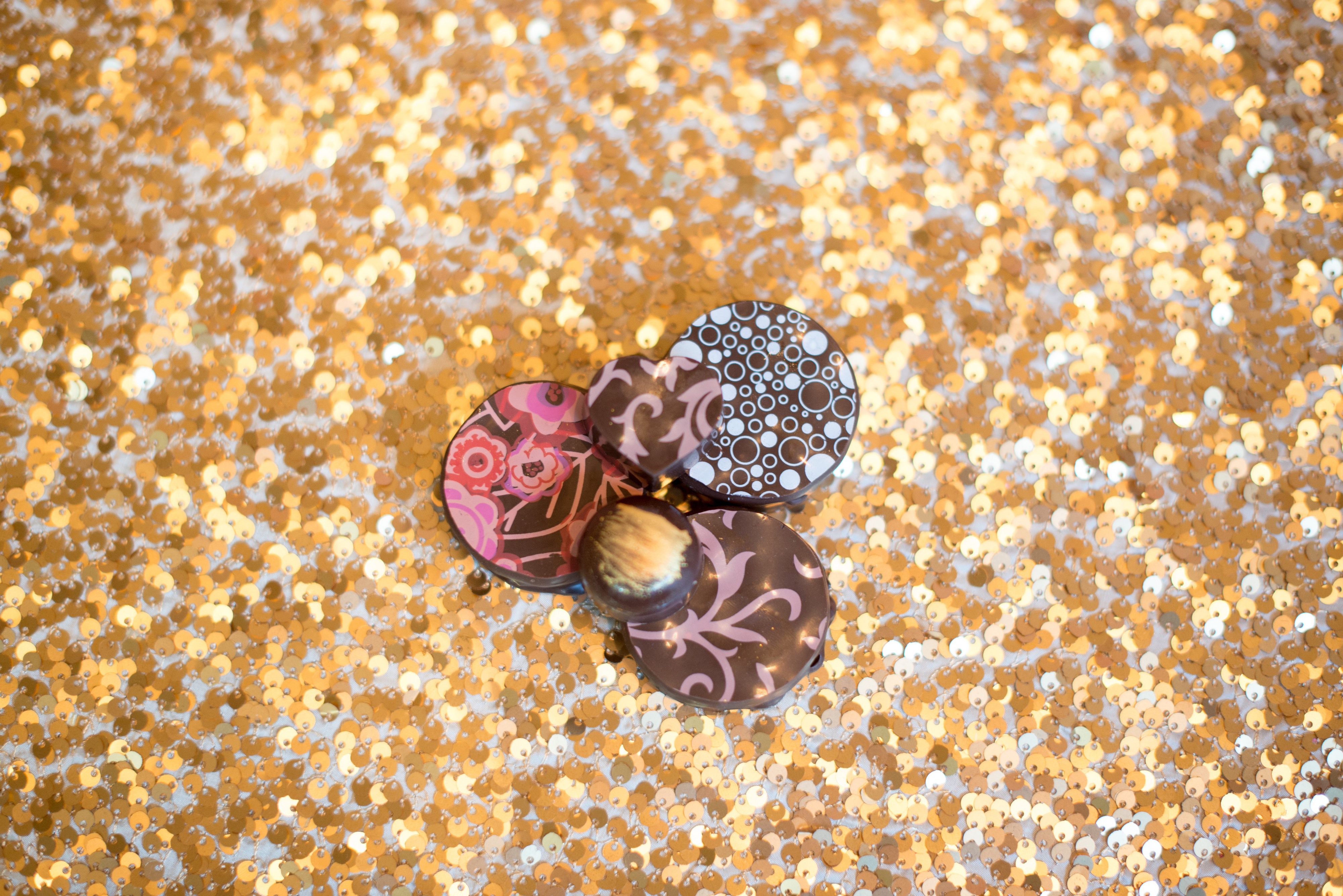 Attendees snacked on chocolate truffles from Delicious Cakes and candies from Yelibelly Chocolates — both made with edible 14-carat gold — and a popcorn bar throughout the event. Table signage and decor were handmade by Urban Magnolia.