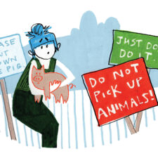 “During a trip to the petting zoo, I had to pick up a baby pig—even though there were signs saying,…